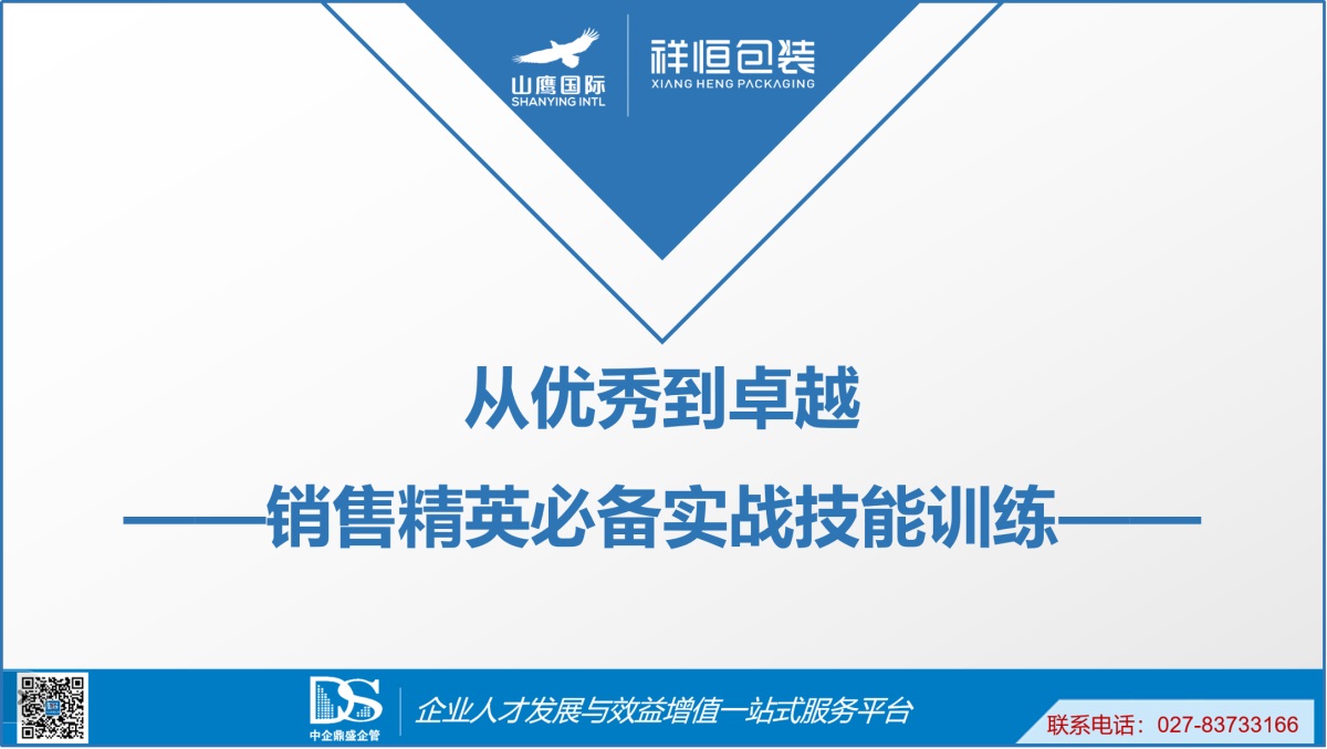 2023年4月29-30日,武汉祥恒包装公司在公司二楼培训室开展了《从优秀到卓越——销售精英必备实战技能训练》培训,邀请外部机构—武汉中企鼎盛企业管理有限公司·...