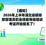 【通知】2026年上半年湖北省碳排放管理员职业技能等级培训考证开始报名了!点击「蓝字」,关注我们上半年考证安排为积极响应国家“双碳”战略,健全湖北省技能人才评价机制,切实提升技能人才评价质量,湖北省人力资源和社会保障厅即将发布2026年度社会组织职业技能等级认...
